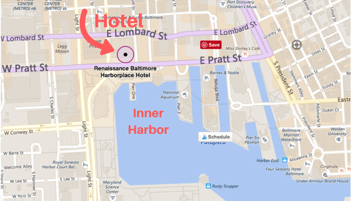 We stayed at the Renaissance Harbor Identify Hotel which is the BEST location for a family weekend in Baltimore, specifically the Inner Harbor.
